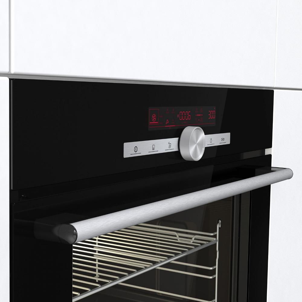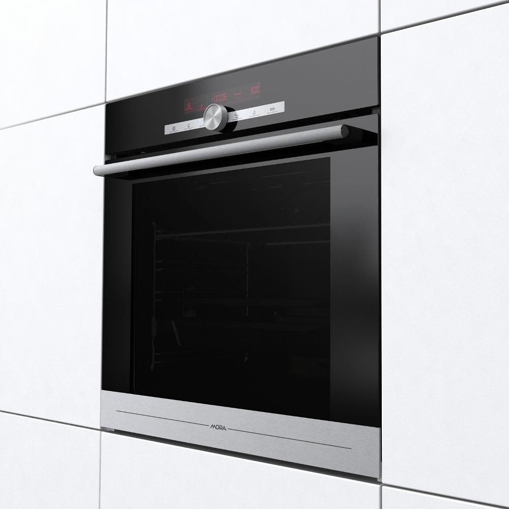 Elektrická rúra samostatná s funkciou pary, HomeMade, tvar rúry, objem rúry 77 l, ergonomický gombík pre potvrdenie a výber nastavenia, dotykové programovateľné hodiny so zobrazením teploty a spôsobu ohrevu, programovanie doby pečenia/odloženie štartu s automatickým vypnutím, kuchynská minútka, multifunkčná rúra 22 funkcií, možnosť regulácie teploty 30-300 °C, automatické režimy pečenia: Pizza 300 °C, pomalé pečení, mrazené a hotové jedlá, teplovzdušné fritovanie bez tuku, 22 automatických programov pečenia, funkcia pečenie v krokoch, gratinovanie, sabat, auto predhrievanie, EXTRA PARA 3 programy pečenia v pare, rýchle predhriatie rúry, rozmrazovanie, ohrev tanierov/jedla, výsuvné teleskopické rošty (1 úroveň), tlmené zatváranie & tlmené otváranie dvierok, ECO CLEAN funkcia ekologického čistenia rúry parou, nerez s úpravou proti odtlačkom prstov, dvojité osvetlenie rúry, personalizácia nastavení (denný čas, hlasitosť zvukového signálu, displej), pamäť posledného nastavenia času peč