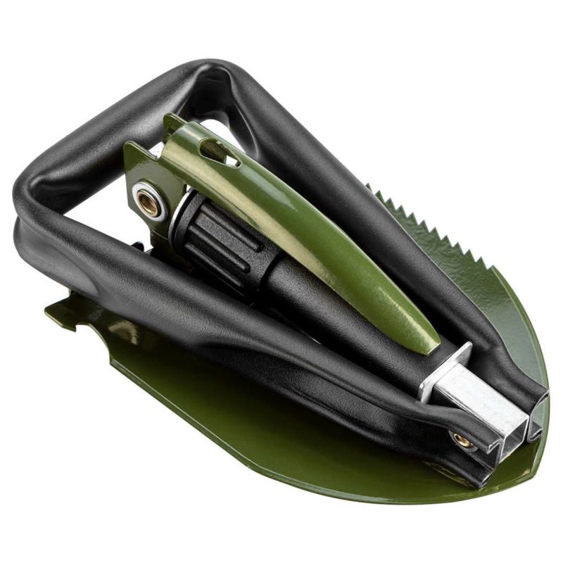 Skladacia lopata Army 5 v 1, 63-121, NEO je nepostrádateľnou súčasťou vybavenia počas survival a bushcraft aktivít. Vhodné na turistiku, kempovanie a skautov. Pomôže chrániť stan pred lejakom a robiť všetky čistiace práce v kempe. Skladacia lopata NEO je vybavená doplnkovým náradím, ako sú: rýľ, krompáč, otvárač na fľaše, pílka, nástrčný kľúč 10 mm, užitočný pri kempovaní. Vyrobené z nemagnetickej ocele s vysokým obsahom mangánu, odolné voči oderu a ohybu. Prídavok mangánu zvyšuje pevnosť a tvrdosť kovu a znižuje náchylnosť na poškodenie. Po zložení zaberie málo miesta vo vašom inventári, takže môže byť vždy po ruke. Vlastnosti produktu: Skladacie Látkový poťah V hlave sú ďalšie nástroje: krompáč, otvárač na fľaše, píla, nástrčný kľúč 10 mm Technické dáta: Rozmery: 118 mm x 60 mm (140 mm) x 190 mm (465 mm) Materiál: Oceľ Mn