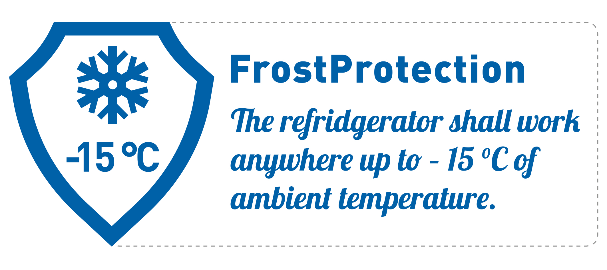 Frost protection – umožnuje správne fungovanie mrazničky až do -15 ° C okolitej teploty