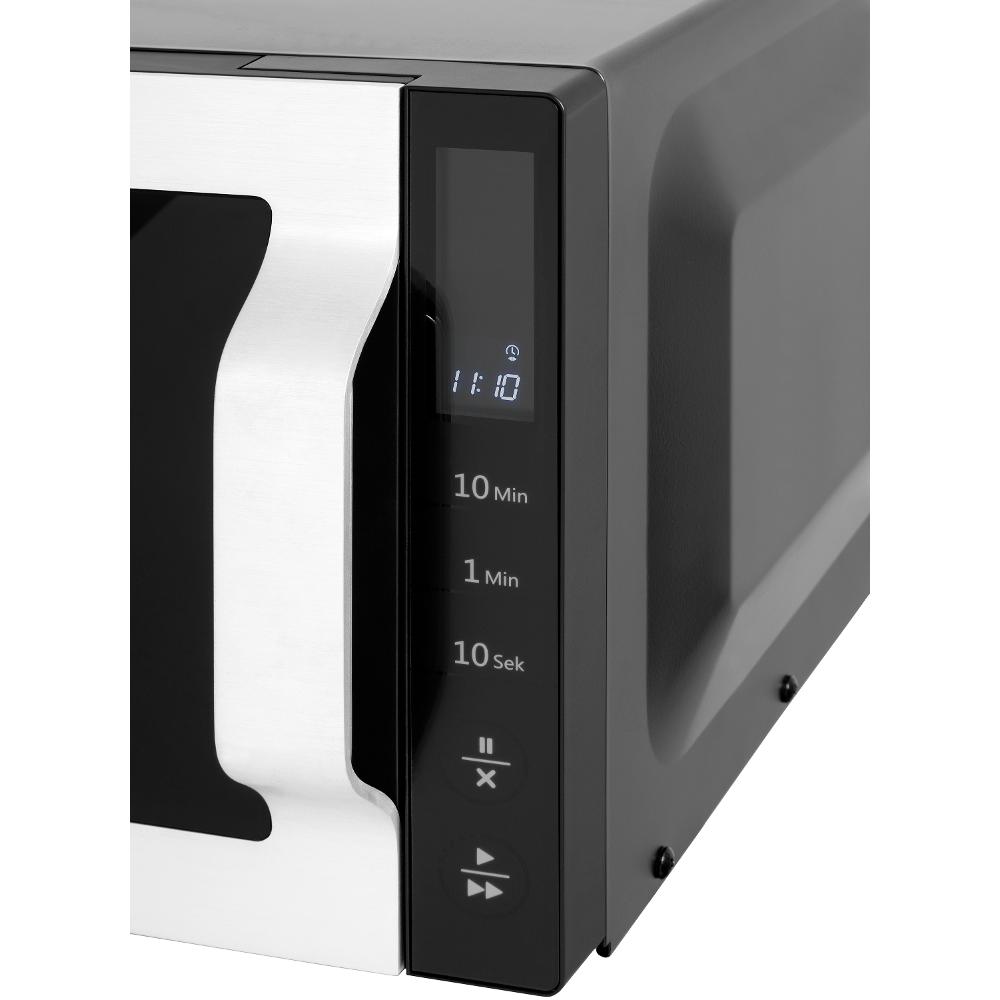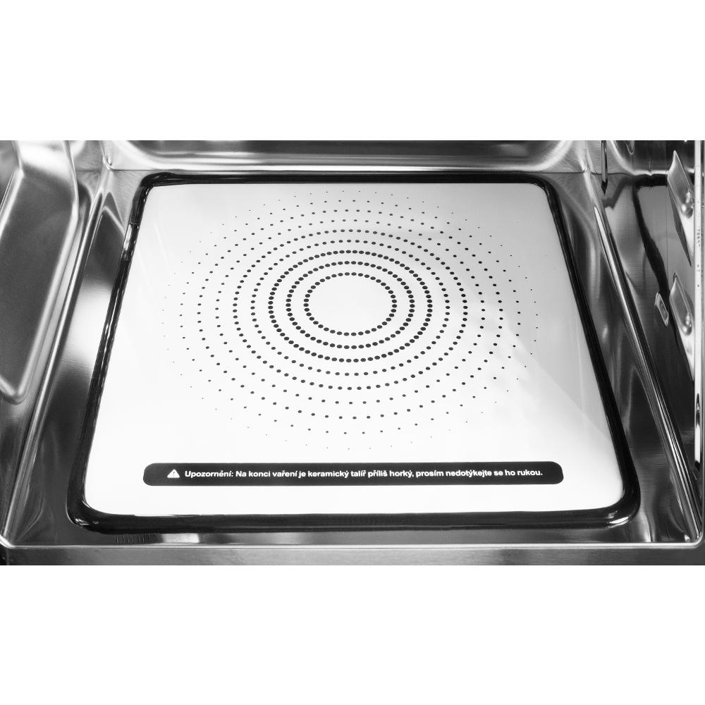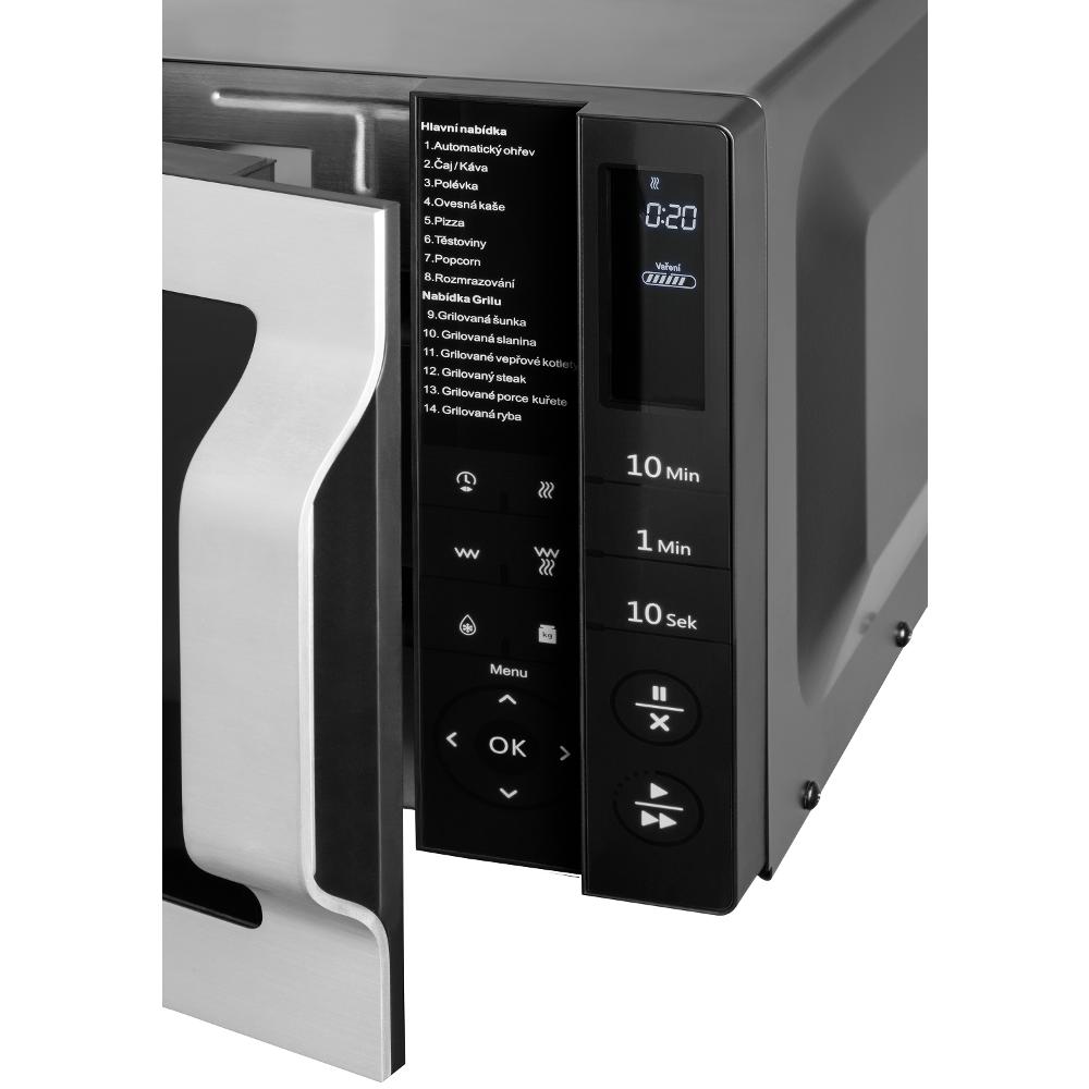 Mikrovlnná rúra s grilom, Objem rúry 25 l, 14 automatických programov, 6 úrovní výkonu (0% / 20% / 40% / 60% / 80% / 100%), Menu v češtine, Dotykové ovládanie, LED displej, Rýchly štart, Timer 99:50 min./sek., Detský zámok, Keramická doska 26 cm, FLAT systém (rovnomerné varenie mikrovlnami), Výkon mikrovĺn 900 W, Výkon grilu 1000 W, Dekoračné madlo s rámom dverí, Farba čierna, Rozmery (v š h) 28,7x49x38,6 cm