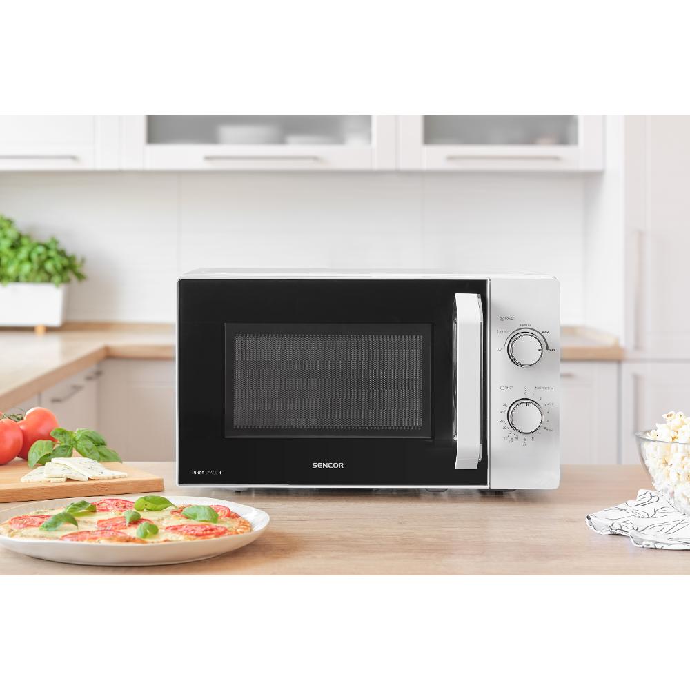 Mikrovlnná rúra, Mikrovlnný ohrev pre jednoduché a rýchle ohriatie a varenie, Trvanlivý interiér so smaltovaným povrchom pre jednoduché čistenie, Jednoduchú manuálnu obsluhu zaisťujú iba dva ovládacie gombíky, Veľký vnútorný priestor: Je možné používať ešte väčšej misky až do 25,5 cm, Objem 20 l, 5 úrovní výkonu mikrovĺn vyhovie všetkým vašim potrebám, Funkcia rýchleho a hygienického rozmrazenia, 35 minútový časovač je dostatočný aj pre varenie pokrmov, Mikrovlnný výkon 700 W, Zvukový signál označujúci ukončenie programu, Dvierka otvárané integrovanou rukoväťou, Priemer otočného taniera: 255 mm, Rozmery (š × v × h): 440 × 259 × 364 mm, Hmotnosť: 10 kg