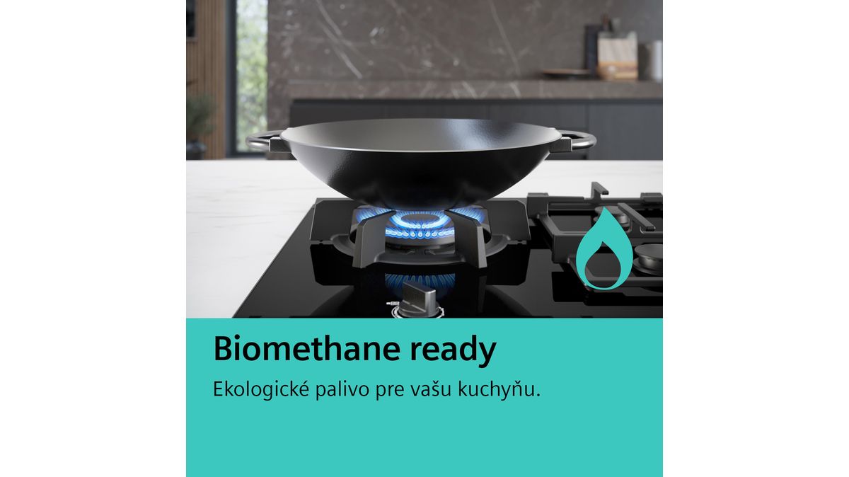 - Biomethane ready – pripojte svoju plynovú varnú dosku na obnoviteľný biometánový plyn.