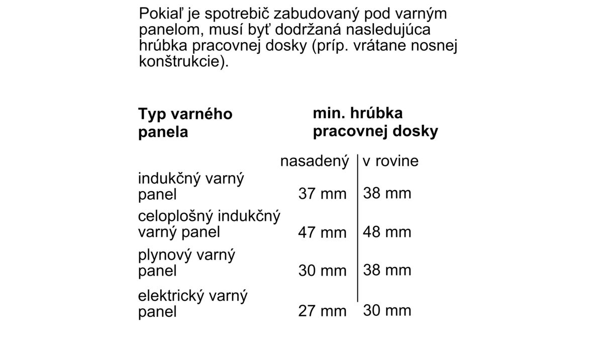 „Rozmery potrebné pre zabudovanie nájdete v inštalačných materiáloch.“