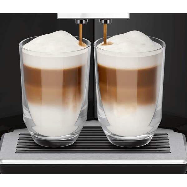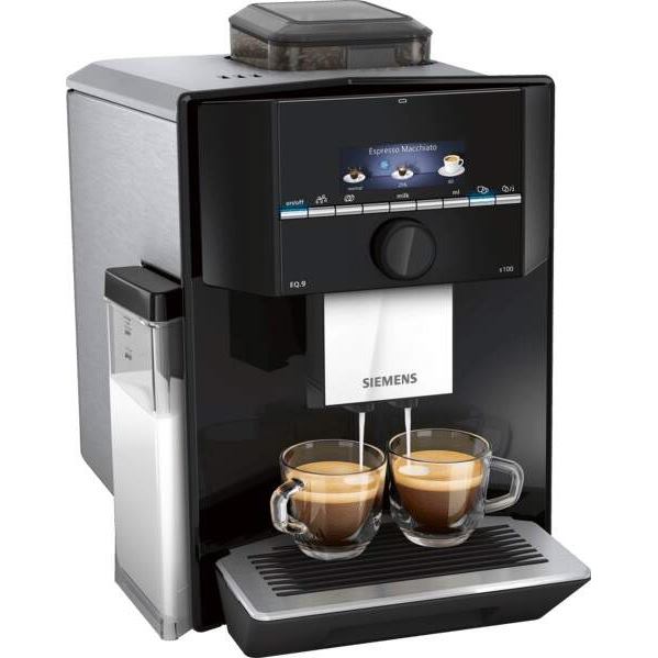 Kávovar Siemens TI921309RW EQ.9 s100 Black, oneTouch funkcia, aromaDouble Shot, TFT displej s interatívnym menu, superSilent, nastavenie osobných nápojov až pre 10 osôb, výpusť kávy a mlieka výškovo nastaviteľná,príprava dvoch samostatných šálok pri všetkých kávach a aj mliečnych špecialitách, odnímateľný zásobník na vodu, tichý keramický mlynček „silent ceram drive“, tlak čerpadla 19 barov, samostatný zásobník na mletú kávu, plnoautomatické parné čistenie mliečneho systému po každej príprave mliečneho nápoja, automatický čistiaci a odvápňovací systém, nastaviteľný stupeň mletia, jazyk displeja programovateľný.