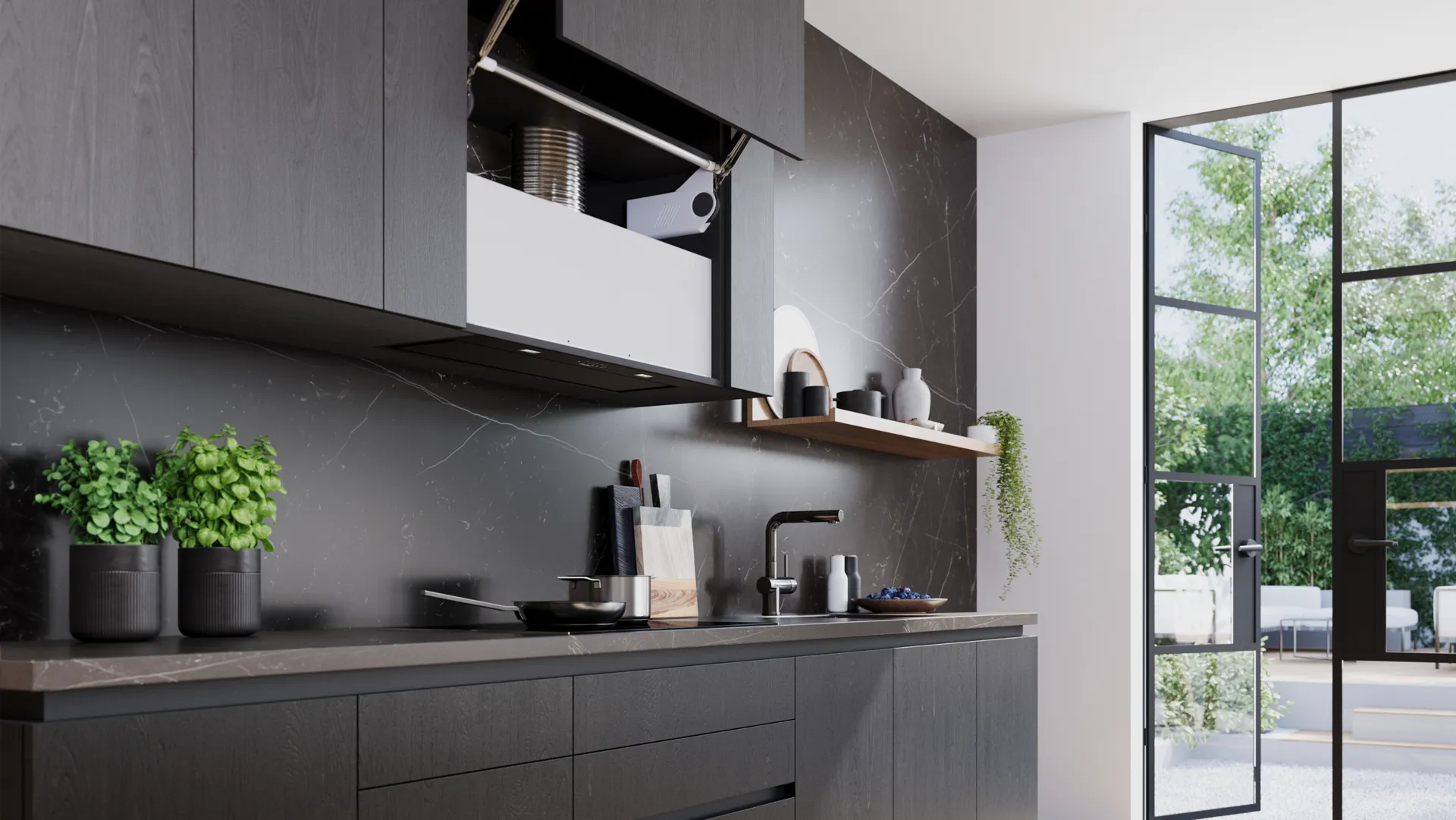 zabudovateľný odsávač pár, 86 cm, A++, čierny, max.normální stupeň 595 m3/hod, intenzívny 820 m3/hod, LED osvetlenie, ovládanie pomocou tlačidiel, hlučnosť pri normálnom stupni min./max.: 42/61 dB
