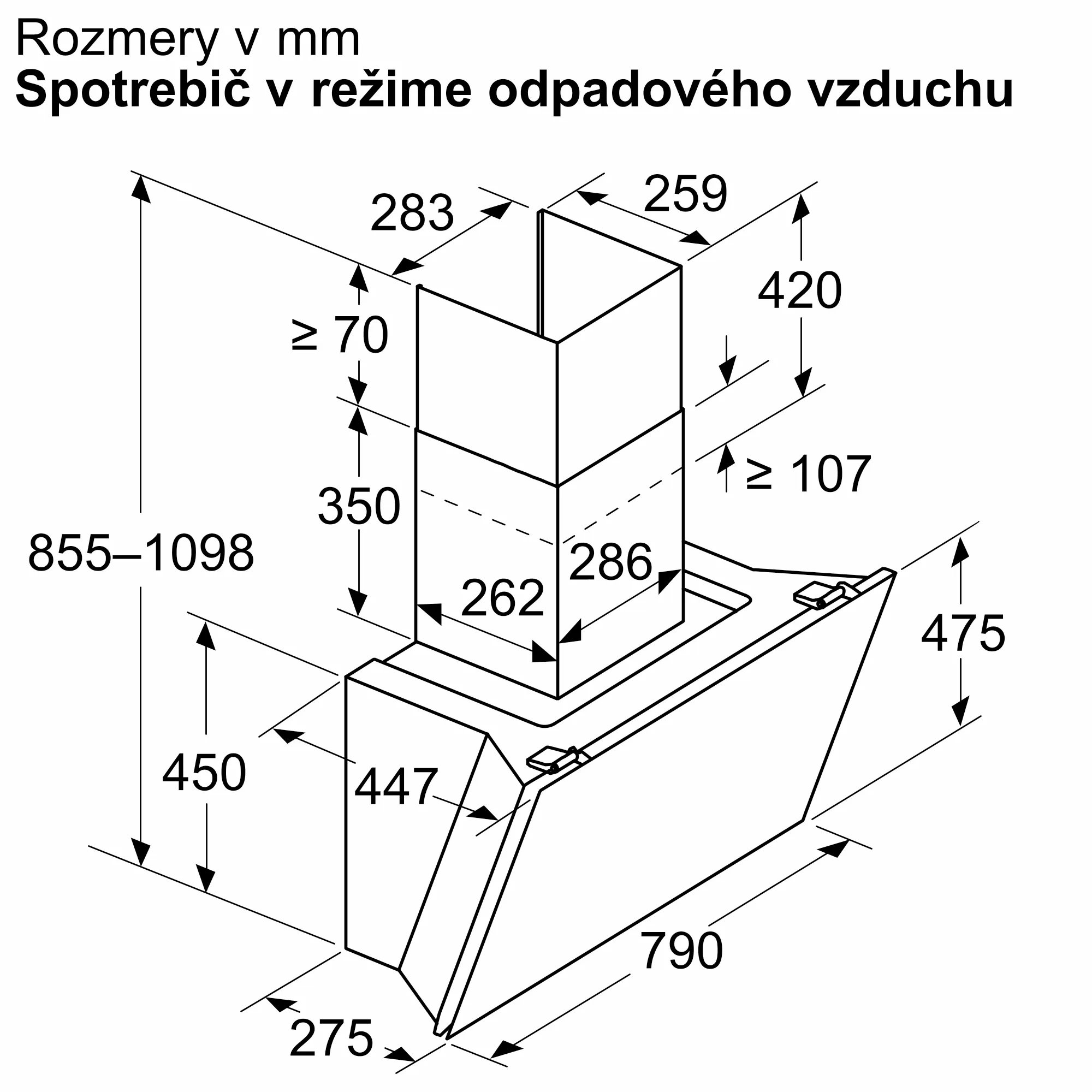 komínový odsávač pár, 80 cm, A+, naklonený dizajn – čierne sklo, max. normálny stupeň 432 m3/hod, intenzívny stupeň 915 m3/hod, cookConnect systém, Intelligent hood automatic, LED osvetlenie, iQdrive motor, touchControl, hlučnosť min./max.: 51/68 dB