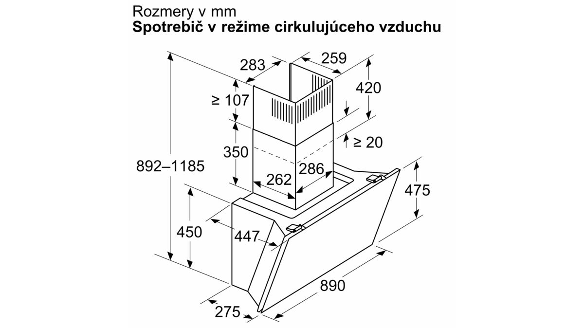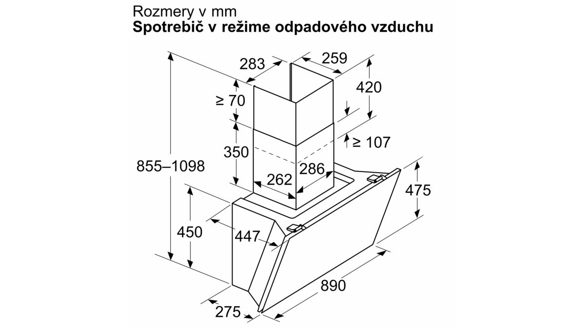 komínový odsávač pár, 90 cm, A+, naklonený dizajn – čierne sklo/antikoro, max. normálny stupeň 441 m3/hod, intenzívny stupeň 1007 m3/hod, cookConnect system, climateControl Sensor, LED osvetlenie, iQdrive motor, touchControl, hlučnosť min./max.: 51/70 dB
