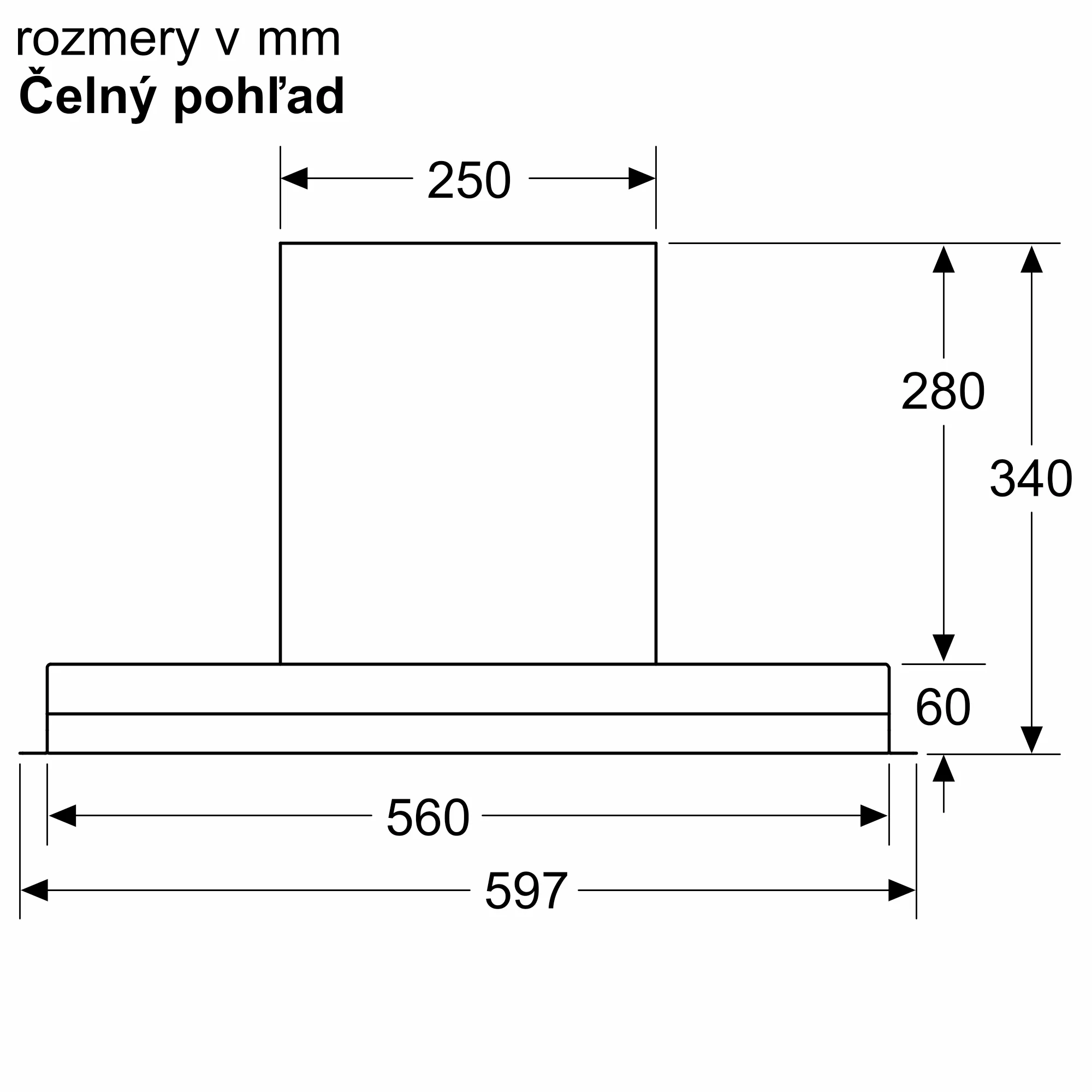 vstavaný dizajnový odsávač pár, 60 cm, čierny, max. normálny stupeň 459m3/hod, intenzívny stupeň 749m3/hod, LED osvetlenie, hlučnosť pri normálnom stupni min./max .: 50/63 dB