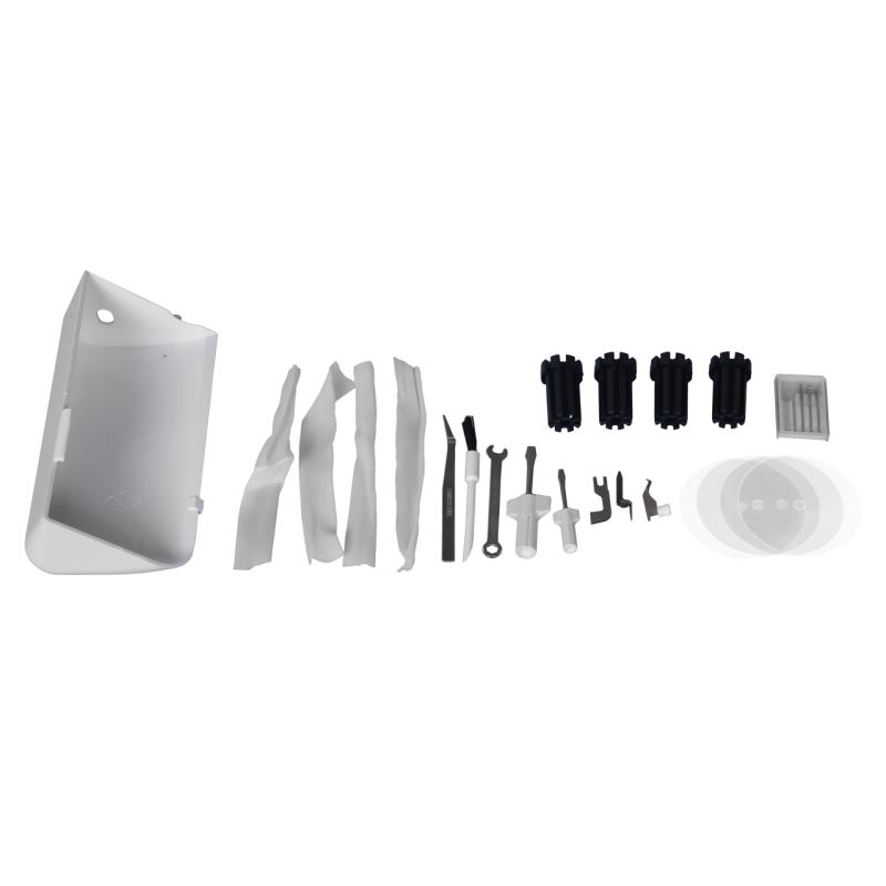 s početným príslušenstvom, vrátane horného noža a pinzety, ktoré sú tak vždy po