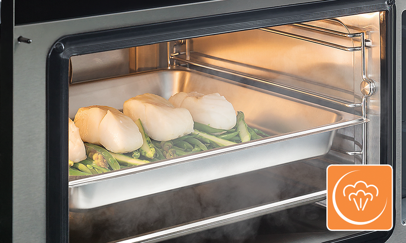 100% parný variant zabezpečí plnosť chutí a vôní pripravených jedál a umožňuje zachovanie ich nutričných vlastností, vitamínov a minerálov, aby sa zdravé jedlo stalo čistým potešením. Vzhľadom na skutočnosť, že teplota v rúre počas pečenia neprekročí 100 ° C, jedlo nestratí vodu a tým sa zachová jeho prirodzená šťavnatá konzistencia. Táto možnosť je najvhodnejšia na varenie vajec, rýb, filetov z hydiny, zeleniny, obilnín.