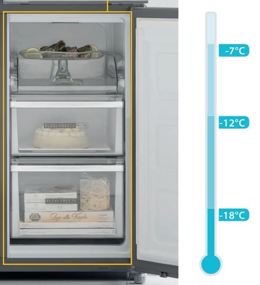 FlexiFreeze je konvertibilná zásuvka, kde si môžete zvoliť jednu z 3 teplôt podľa toho, aké potraviny skladujete a na základe vašich preferencií.