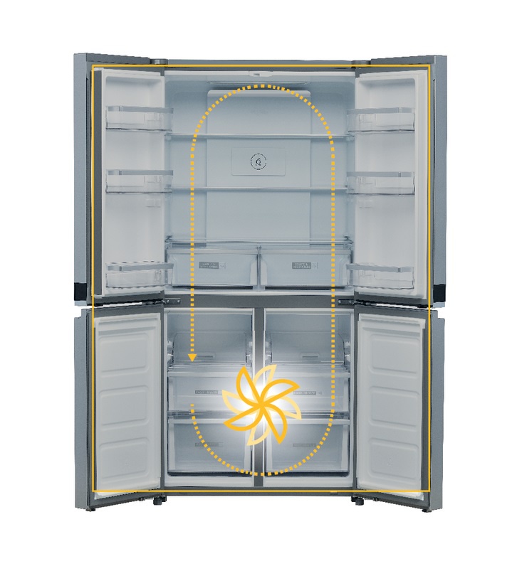 S objemom až 591 litrov (31 nákupných tašiek*) je W Collection 4 Doors priestornou chladničkou, ktorú môžete prispôsobiť individuálnym potrebám: nastaviteľná teplota v policiach a zásuvkách, veľkorysosť priestoru a veľmi dobrá organizácia pre skladovanie objemných predmetov a udržiavanie poriadku v malých predmetoch.