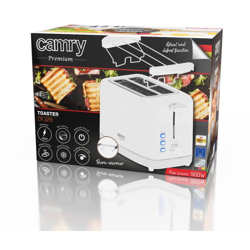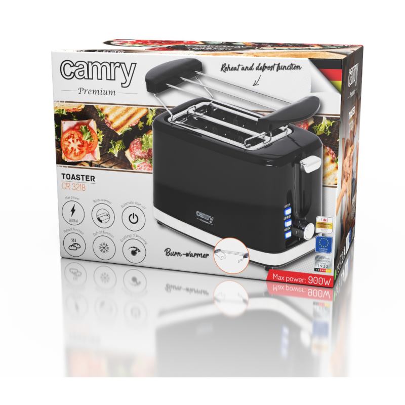 Hriankovač na 2ks hrianok - Efektívny hriankovač Camry CR3218 s maximálnym výkonom 900 W umožňuje pripraviť dva toasty naraz. Gombík nastavenia opečenia umožňuje pripraviť toasty tak, aby boli presne také chrumkavé, ako by mali byť. Tácka na omrvinky pomáha udržiavať zariadenie, ako aj miesto, kde sa pripravuje jedlo, čisté. Hriankovač